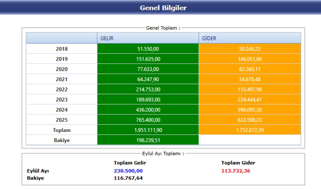 Neriman Erol Yılmaz Sosyal Bilimler Lisesi 2024-2025 Eğitim-Öğretim Yılı Aylık Gelir-Gider Tablosu